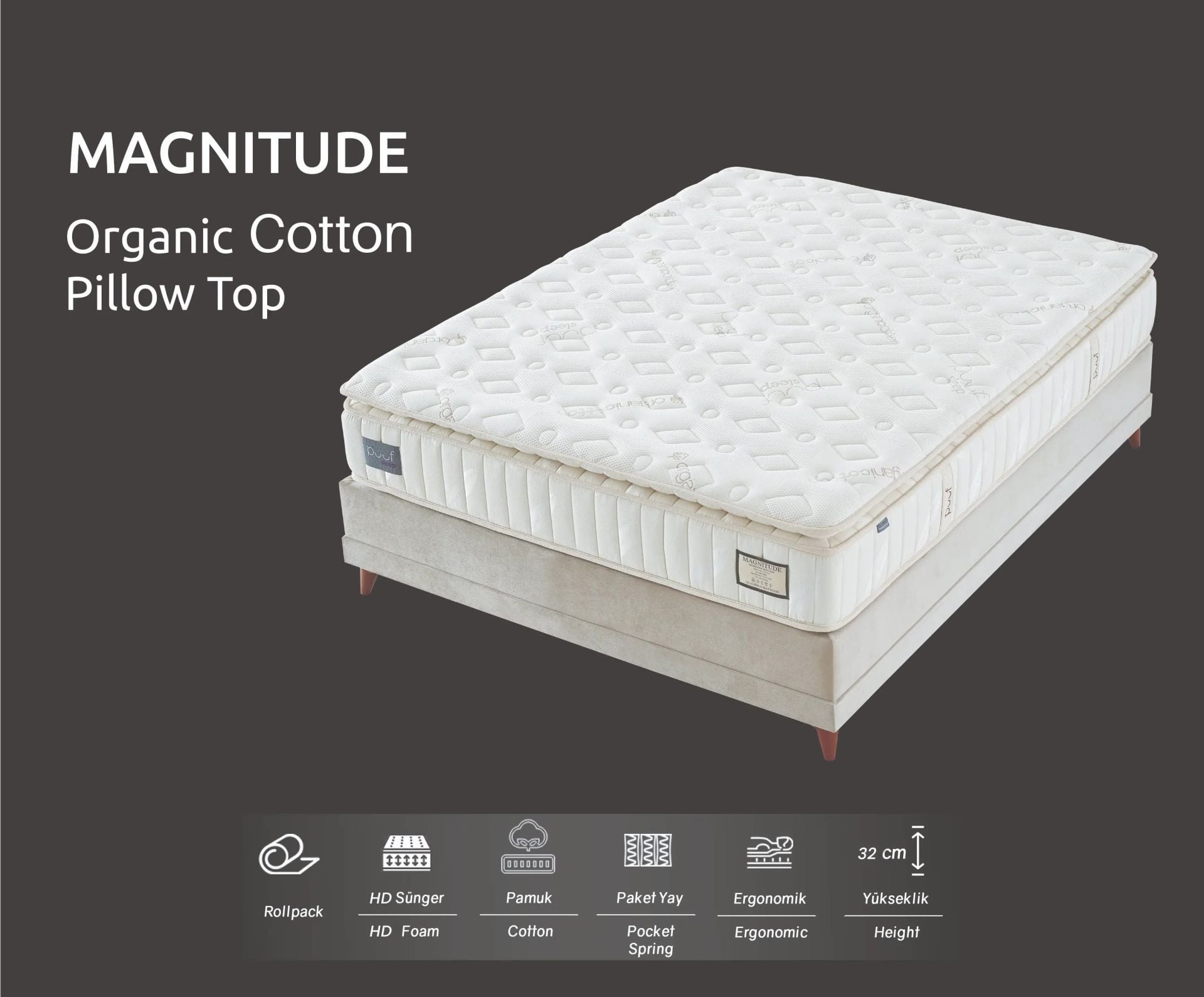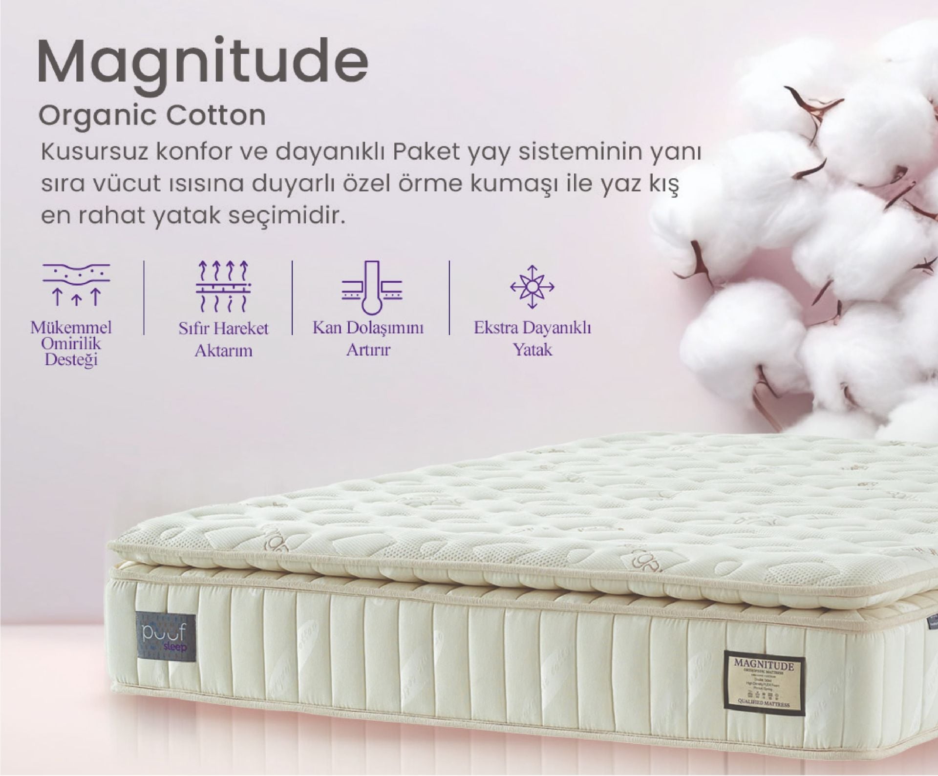 Puuf Sleep Magnitude Organic Cotton Pocket Yaylı Cashmere Pedli Yatak